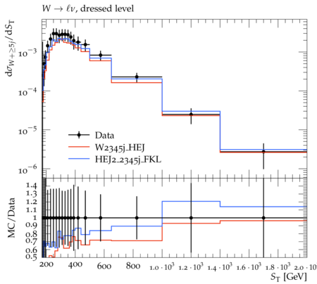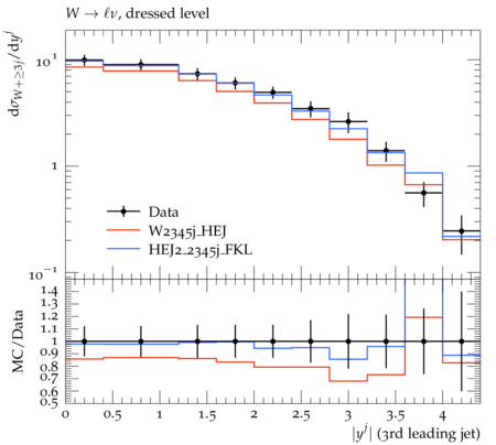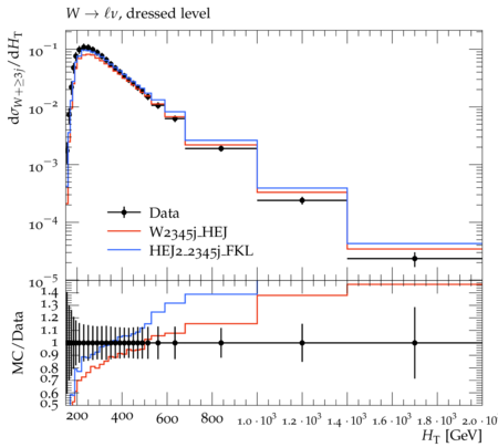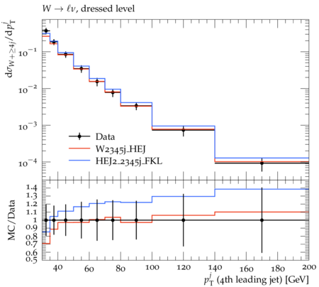 Measurements of cross sections for the production of a $W$ boson in association with jets in proton-proton collisions at $\sqrt{s} = 7$ TeV with the ATLAS experiment at the Large Hadron Collider. With an integrated luminosity of 4.6 $\text{fb}^{-1}$, this data set allows for an exploration of a large kinematic range, including jet production up to a transverse momentum of 1 TeV and multiplicities up to seven associated jets. The production cross sections for W bosons are measured in both the electron and muon decay channels. Differential cross sections for many observables are also presented including measurements of the jet observables such as the rapidities and the transverse momenta as well as measurements of event observables such as the scalar sums of the transverse momenta of the jets. The default routine assumes both muon and electron decay channel of the $W$ boson are being generate and the average will be constructed. Individual lepton channels can be specified using options LMODE=EL and LMODE:MU respectively.