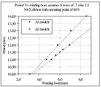 In order to scan of the undulator parameter space and study the effects of changing the period, bore and winding size, computer modelling studies have been applied. Current computer modelling indicates that an undulator (1:1 ratio of copper to NbTi) with 11.5 mm period, 6.3 mm winding bore, 80 % of the critical current and 10 MeV photons at the first harmonic can be achieved. These results are being experimentally verified with short test pieces; more details about the magnetic modelling studies, see these EPAC06 proceedings. In parallel with the magnetic modelling a number of short undulator prototypes (EPAC06 proceedings) have been/will be built to develop fabrication techniques for the full scale modules. |