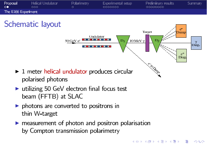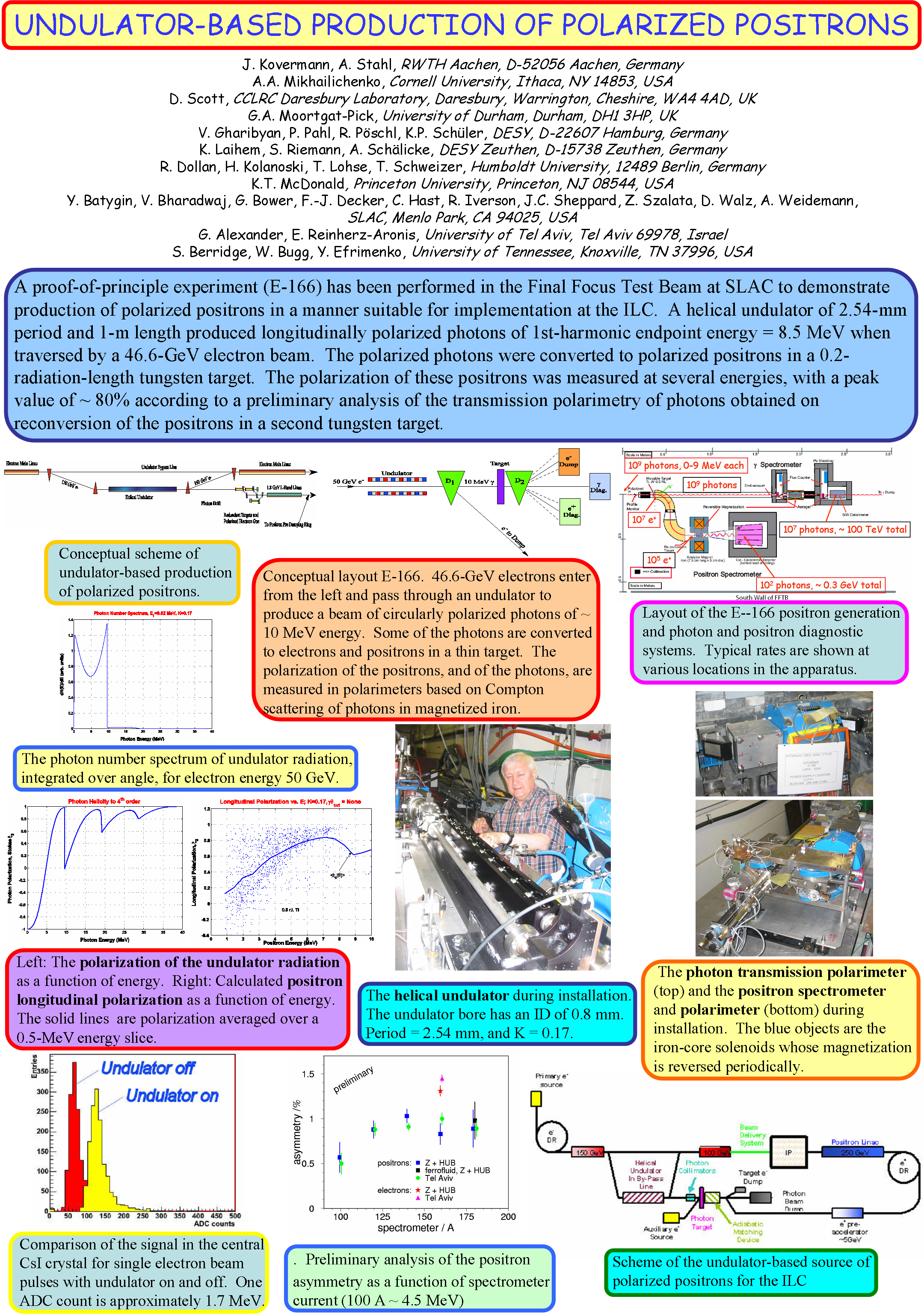 Its goal was to demonstrate the production of polarized positrons with an helical undulator. It uses an 1 m helical undulator in connection with the 50 GeV FFTB. Photon and positron diagnostics has been done. More details are given in this talk, summarized on this poster contribution to EPAC'06. |