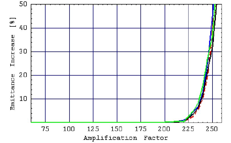 Careful studies have also been made to study the impact of the narrow aperture, vacuum vessel on the electron beam to ensure that wall impedance or surface roughness do not degrade the electron beam properties. Resistive wall wakefield and surface roughness studies have shown that there is a small effect on the electron beam energy spread. The beam energy spread would increase by about 10% for stainless steel, but only by about 1 % for an Al, Cu or Au coated vessel. Studies on the emittance dilution due to the resitive wall wakefields indicate that the strength of the kick along 200 m of undulator would need to be amplified by a factor greater than 200 to have any noticeable effect, more details se in this talk. To mitigate any further wakefield effects a smooth copper pipe (r~30 nm) with a 6.3 mm outer diameter and 5.8 mm inner diameter will be used, which is available from industry today. It will be important to achieve and maintain a vacuum in the undulator vessel. Studies on the electron cloud instability have shown that for a vacuum of 100 nTorr the increase in beam amplitude is about 0.2%. By installing photon collimators at about every 10-20 m, for instance between every undulator cell, a suitable vacuum can readily be maintained. Further details and a summary can be found in this EPAC06 proceedings. |