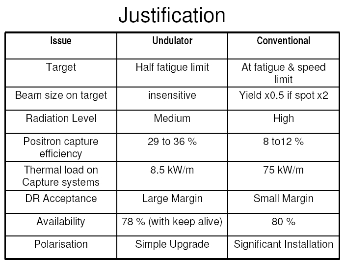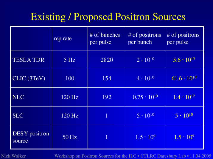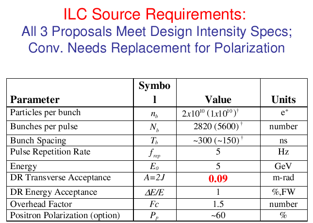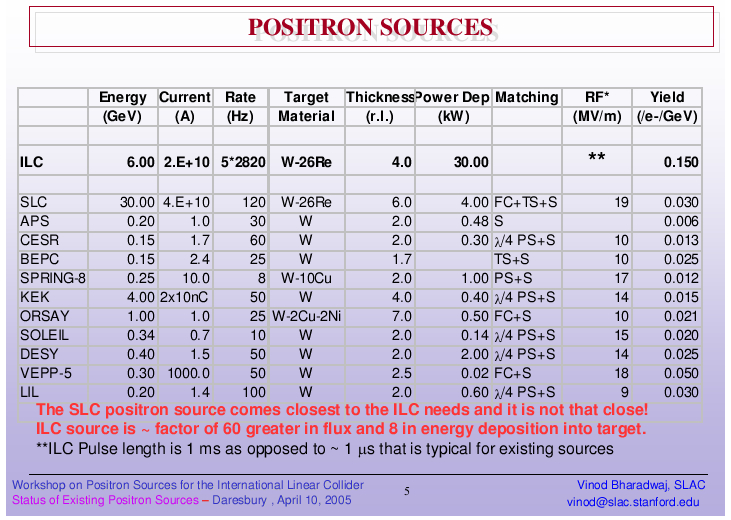 The SLC positron source comes closest to a possible conventional ILC source. However, the SLC source is still a factor 60 less in flux and a factor 8 less in required energy deposition in the target. More details about the SLC source and its target experience are given in this talk. |
