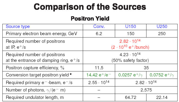 Nevertheless both undulator set-ups leads to the same positron yield which is a factor 3 higher compared with the yield of the conventional source, confirming the recommendation from Snowmass'05. Further details are given in this contribution to EPAC'06. |