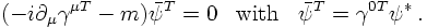 To answer this, take the equation for the barred spinor and transpose it. The result reads