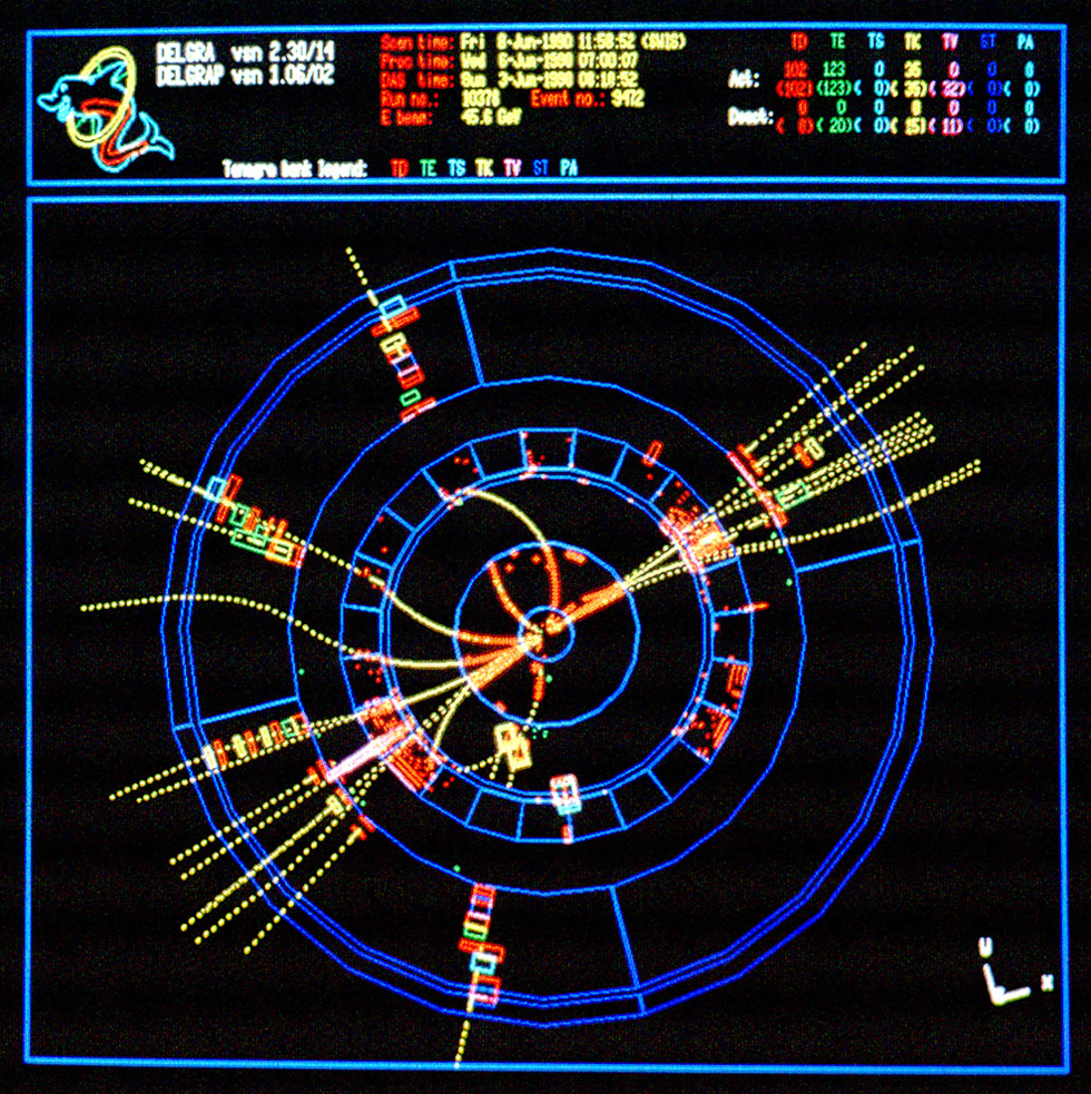 In the previous section the emission of an extra gluon in electron-positron annihilation into a quark-antiquark pair has been discussed. It was found that the differential cross section exhibits a singularity, if the gluon energy or its angle w.r.t. either the quark or the antiquark approach zero. Of course, the question whether this is a relevant singularity, depends on the experimental ability to resolve this gluon. In addition to this individual gluon emission, and in view of the discussion of the singularity structure in multiple emission processes leading to a jetty structure of QCD events it seems natural to provide a definition of what a jet is. In fact, this definition will also provide some criteria describing the resolution of QCD radiation. Anyways, before going into any detail there, it is worth to view a few typical QCD events to gain some feeling for how to define jets at all.![]() |