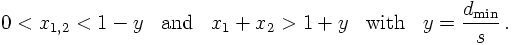 The definitions above provide a cut way of cutting away "dangerous" regions - soft and collinear - of differential cross sections for extra parton emission. The idea, at least at leading order, is to just demand that all partons produce a jet :this will regularise all tree-level QCD amplitudes. Equipped with such a defition, one may now try to calculate the three-jet cross section at leading (possible) order in QCD in the, say, Jade algorithm. To do so, the Jade definition of the distance d must be translated into cuts on the two x in the differential cross section. After some algebra, one finds that